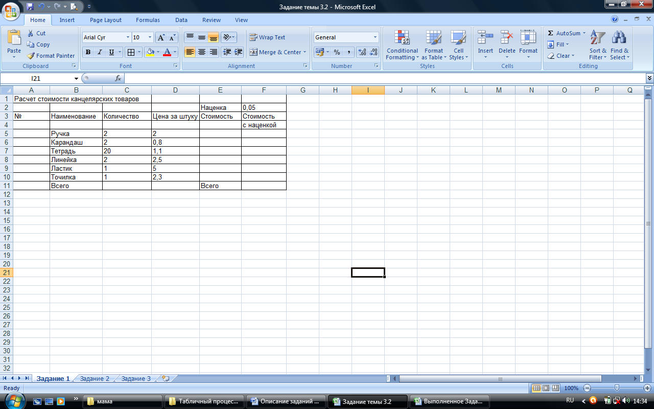 Рис.10 2. Задание 2. a) Создать таблицу по образцу: