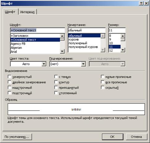 Рис. 5. Диалоговое окно Шрифт, вкладка Шрифт