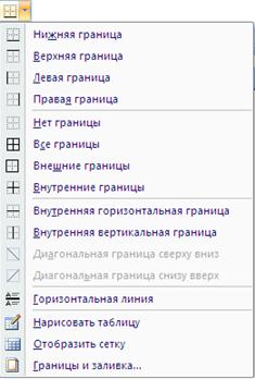 Рис. 13. Кнопки создания границ текста на блоке инструментов Абзац