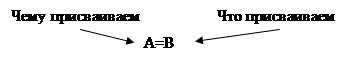 Каждое выражение при программировании и записи алгоритмов характеризуется своим значением. Поскольку программа (или алгоритм) описывает некоторые вычислительный процесс, это значение должно быть запомнено для дальнейшего использования (в качестве операнда, для вывода на печать и т.д.). Запоминание для дальнейшего использования осуществляется присваиванием значения некоторой переменной. Присваивание будет обозначаться знаком "=". Оператор присваивания = позволяет изменять текущее значение переменной.