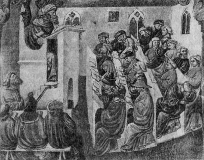 Свидетельство современника о сожжении книг Аристотеля (начало XIII в.) Вопросы 1. Приведите примеры употребления слов «схоластика», «схоластический» в современной речи. 2. Почему схоластика не сразу была полностью одобрена церковными авторитетами? 3. Почему родственники Фомы Аквинского так перепугались, когда узнали, в какой орден собирался вступить Фома (ведь они давно знали, что он будет монахом)? 4. Один из известных богословов XII в. Бернар из Шартра однажды бросил фразу, с которой, наверное, согласился бы и Фома Аквинский: «Все мы, мудрствующие, только карлики, взобравшиеся на плечи античных гигантов. Только благодаря им мы можем видеть дальше и различать больше, чем другие». Как вы понимаете эти слова христианского мыслителя? В те дни читали в Париже некие книжки, составленные, как говорили, Аристотелем, излагавшие метафизику, недавно занесенные из Константинополя и переведенные с греческого на латинский язык. Поелику они не только подали хитроумными идеями повод новой упомянутой ереси, но и могли возбудить новые, еще не появившиеся, все они были присуждены к сожжению, и на том же соборе было постановлено, чтобы впредь никто не осмеливался под страхом отлучения их переписывать, читать или каким-либо образом хранить. Из «Суммы теологии» Фомы Аквинского Бытие Божие может быть доказано пятью путями. Первый и наиболее очевидный путь исходит из понятия движения. В самом деле, не подлежит сомнению и подтверждается показаниями чувств, что в этом мире нечто движется. Но все, что движется, имеет причиной своего движения нечто иное... Следовательно, коль скоро движущий предмет и сам движется, его движет еще один предмет и так далее. Но невозможно, чтобы так продолжалось до бесконечности, ибо в таком случае не было бы перводвигателя, а следовательно, и никакого иного движителя. Ибо источники движения второго порядка сообщают движение лишь постольку, поскольку сами движимы первичным движителем, как-то: посох сообщает движение лишь постольку, поскольку он сам движим рукой. Следовательно, необходимо дойти до некоторого перводвигателя, который сам не движим ничем иным. А под ним все разумеют Бога. Второй путь исходит из понятия производящей причины (Производящей причиной Аристотель называет то, от чего или под чьим действием возникли данная вещь или данное явление.). В самом деле, мы обнаруживаем в чувственных вещах последовательность производящих причин. Однако не обнаруживается и невозможен такой случай, чтобы вещь была своей собственной производящей причиной. Тогда она предшествовала бы самой себе, что невозможно. Нельзя помыслить и того, чтобы ряд производящих причин уходил в бесконечность, ибо в таком ряду начальный член есть причина среднего, а средний — причина конечного (причем средних членов может быть множество или только один). Устраняя причину, мы устраняем и следствия. Отсюда, если в ряду производящих причин не станет начального члена, не станет также конечного и среднего. Но если ряд производящих причин уходил бы в бесконечность, отсутствовала бы первичная производящая причина, а в таком случае отсутствовали бы и конечное следствие, и промежуточные производящие причины, что очевидным образом ложно. Следовательно, необходимо положить некоторую первичную производящую причину, каковую все именуют Богом. Третий путь исходит 