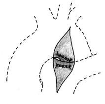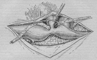 Ультразвуковое исследование выявляет состояние правых и левых отделов сердца. Современная ультразвуковая аппаратура нередко дает возможность визуализации ОАП. При катетеризации полостей сердца зонд проводится из легочной артерии через ОАП в аорту. При ретроградной аортографии отмечается одновременное контрастирование аорты и легочной артерии. В основном с помощью клинической картины и перечисленных выше неинвазивных методик обследования устанавливается правильный диагноз. Катетеризация и контрастирование полостей сердца, а также аортография применяются только в неясных случаях. Диагностированный ОАП является показанием к оперативному лечению. Установлено, что даже при неосложненном течении данного порока средняя продолжительность не оперированных больных не превышает 40 лет. Типичным считается левосторонний заднебоковой доступ в третьем межреберье. В настоящее время предпочтение отдается заднему мини-торакотомного доступу. После торакотомии в области протока вскрывается париетальная плевра. Далее проток выделяется. При этом следует остерегаться повреждения возвратного нерва, который проходит позади протока (рис. 71).
