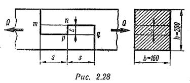 I. Длина зуба s определяется из условия прочности на скалывание по плоскости тп или рq (рис. 2.28):