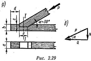 Врубки деревянных элементов рассчитывают на смятие и на скалывание, т. е. на срез вдоль волокон.