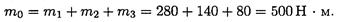 Момент на шкиве 1 движущий, а моменты на шкивах 2, 3, 4 — моменты сопротивления механизмов, поэтому они имеют противоположное направление. Брус скручивается между движущим моментом и моментами сопротивления. При равновесии момент движущий равен сумме моментов сопротивления: