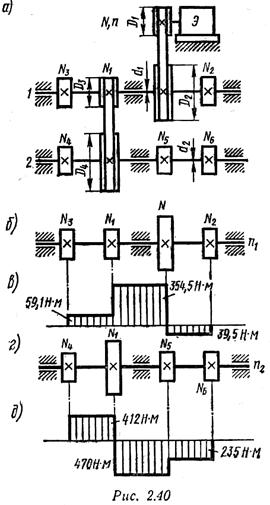 Нарис. 2.40, б изображен вал I. На него поступает мощность N и с него снимаются мощности Nl, N2, N3.
