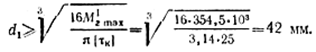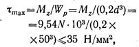 Эпюра крутящих моментов для вала 2 показана на рис. 2.40, д. Расчетный (максимальный) крутящий момент Мя max" = 470 H-м. Диаметр вала 2 из условия прочности