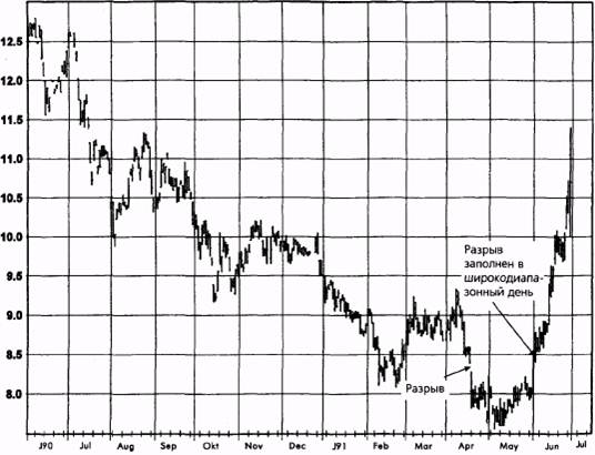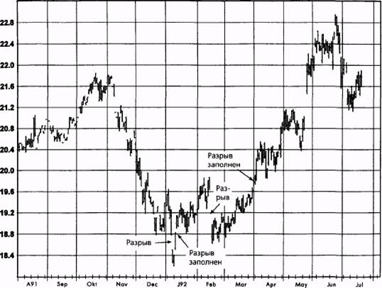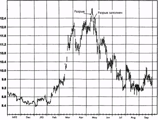 Рисунок 11.13. ЗАПОЛНЕННЫЕ НИЖНИЕ РАЗРЫВЫ: НЕФТЬ, АВГУСТ 1992