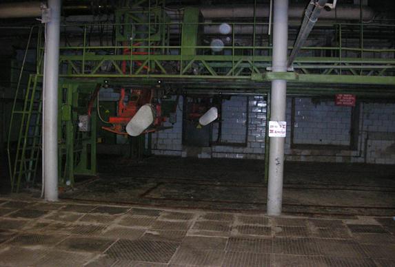 Около каждого питателя-смесителя располагается 6-8 кип, и работница, последовательно отбирая слои волокна из каждой из них, забрасывает его в рабочую камеру машины на питающую решетку. Хлопок при помощи питающей решетки подается в камеру питателя и захватывается наклонной игольчатой решеткой, которая направляет его на вращающийся разрыхлительный валик. Валик, вращающийся со скоростью 260-270 об/мин., разрыхляет хлопок, перемешивает его и очищает от посторонних примесей. Аналогичным образом осуществляется работа угарного питателя. Наряду с питателями-смесителями в последнее время широко применяются кипоразрыхлители, которые проходят вдоль ряда кип и снимают верхние слои хлопка самостоятельно, то есть без обслуживающего персонала (рис.4). Угарный питатель служит для равномерного добавления в смесь угаров хлопкового волокна (отходов) и их частичного разрыхления. В питателях-смесителях хлопок и угары (производственные отходы хлопка) перемешиваются и подаются по трубопроводу пневмотранспорта к головному питателю.