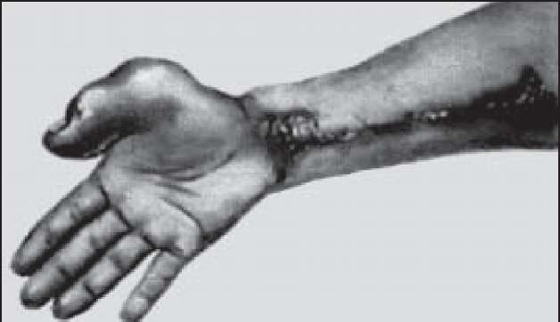 Клінічні ознаки. За клінічним перебігом виділяють місцеву (локальну), коли процес локалізований у певній ділянці кістки, і генералізовану (септико-токсичну або септико-піємічну) форму остеомієліту, яка перебігає При посттравматичному остеомієліті гостре запалення розпочинається в м'яких тканинах і травмованій ділянці кістки. Паралельно з гнійним розплавленням некротизованих ділянок м'яких тканин відбувається ураження і секвестрація пошкоджених ділянок кістки. Розрізняють "первинні" секвестри, що утворюються з вільних кісткових фрагментів, і "вторинні" - фрагменти кістки, що поступово утворились внаслідок гнійного процесу. Остеомієліт внаслідок переходу запалення на кістку з навколишніх тканин розвивається, як правило, при тривалому гнійному процесі в м'яких тканинах. Спочатку настає ураження прилеглої надкісниці (per continuitatem - через дотик), потім - кіркової речовини. При відсутності адекватного лікування процес переходить у хронічну стадію. Він проявляється періодичним загостренням запального процесу, формуванням нориць, з виділенням із них гною і секвестрів. В окремих випадках остеомієліт може з самого початку набирати форми хронічного. До цього виду остеомієліту відносять атипові форми захворювання: абсцес Броді (обмежена гнійна порожнина, переважно в епіфізарній частині кістки, оточена сполучнотканинною оболонкою), альбумінозний остеомієліт Ольє (білковий ексудат, що локалізується переважно в кірковому шарі кістки), склерозивний остеомієліт Гарре (характеризується склерозуванням кістки, переважно діафізарної частини, за рахунок потовщення та ущільнення кісткової тканини і повної облітерації кістковомозкового каналу). Лікування. Хворого з гострим остеомієлітом необхідно госпіталізувати в хірургічне відділення. Лікування повинно бути своєчасним та повноцінним і спрямованим на: 1) ліквідацію інфекції; 2) підвищення реактивності організму та імунітету; 3) санацію місцевого ураження кістки. Для боротьби з інфекцією призначають антибіотики (інколи їх вводять внутрішньокістково в ділянку ураженої кістки). З метою створення в кістці високої концентрації антибіотика його можна вводити і внутрішньоартері- ально. Антибактеріальне лікування необхідно починати з часу поступлення хворого в стаціонар. Використовують комбінацію 2-3 антибіотиків широко- Для підвищення реактивності організму призначають переливання крові і її компонентів, антистафілококову плазму, Оглобулін. З метою підвищення імунітету призначають імуностимулятори: тимоген, тималін, Т-активін і ін. Місцеве лікування починають з іммобілізації кінцівки шиною або гіпсовою пов'язкою. Призначають УВЧ, електрофорез з антибіотиками, йодидом калію, лазеротерапію. При наявності гною в кістковомозковому каналі проводять остеопункцію і трепанацію кістки. Слід зазначити, що пункційний метод застосовують тільки у дітей 4-6 років. В інтрамедулярній фазі остеомієліту сьогодні переважно проводять декомпресійну мікроостеоперфора- цію з наступним внутрішньокістковим лаважем (промиванням) через дренажну трубку і введенням антибіотиків у кістковий канал. В екстрамеду- лярній фазі остеомієліту операцію доповнюють розкриттям і дренуванням параосальної і міжм'язової флегмони. При хронічному остеомієліті розкривають секвестральну коробку, видаляють секвес