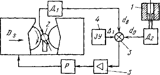 числяется разность Д = d0 — dB и сравнивается с сигналом от задающего устройства 4, которое задает требуемое значение ширины зазора в соединении втулки и плунжера (замыкающее звено). Пока заданное значение зазора больше текущего значения, сигнал с выхода сумматора 3, усиленный усилителем 5, оказывается положительным и шлифование плунжера продолжается. По мере шлифования размер dB постепенно уменьшается и разность Д = dB — d0 постепенно увеличивается. При достижении заданного значения разности диаметров, т.е. Д = Д3, сигнал на выходе сумматора становится равным нулю и затем становится отрицательным. Регулятор Р мгновенно срабатывает и подает команду на отвод шлифовального круга. Размер dв плунжера соответствует размеру d0 втулки и их разность равняется требуемому зазору Δ3. Таким образом, каждый плунжер индивидуально подгоняется по диаметру к диаметру каждой втулки. Так осуществляется автоматическая пригонка плунжеров.