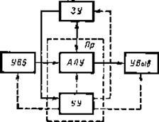 ЭВМ классической архитектуры фон Неймана состоит из пяти основных функциональных блоков: - арифметическо-логического устройства (АЛУ); - устройства управления (УУ); - запоминающего устройства (ЗУ); - устройства ввода (УВв); - устройства вывода {УВыв).