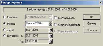 Как видно из видеограммы настройки процедуры формирования отчета, можно задать для его составления произвольный период, указать выводить или не выводить остатки счета на начало и конец периода, выбрать обороты только по дебету, только по кредиту или и те и другие, детализировать или нет данные в разбивке по субсчетам. Кроме того, можно вызвать дополнительную форму настройки, определяющую, как будет формироваться период составления отчета (рис. 7.10). Отчет может формироваться за квартал, месяц, произвольный интервал дат, с начала года, квартала и т.д. Оборотная ведомость позволяет выявить ошибки, допущенные в учетном процессе. Оборотные ведомости различаются по типам и формам представления.