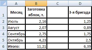 В результате выполненных действий в столбце Заготовка яблок, т будут отображены суммарные значения (рис. 8). Как видно на рис. 7, окно Специальная вставка позволяет копировать различные сложные элементы: • группа Вставить определяет объект копирования; • группа Операция при необходимости назначает математическую операцию, которую можно применить к копируемым данным; • опция пропускать пустые ячейки позволяет не заменять значения в области вставки, если копируемая область содержит пустые ячейки; • опция транспонировать служит для отображения указанной в области копирования строки в столбец и соответственно столбца копируемой области - в строку (область вставки не должна перекрывать область копирования). Например, чтобы транспонировать строку, в которой перечислены месяцы отчетного периода (диапазон В1:Е1), в столбец (диапазон А2:А5), следует выполнить такие действия: