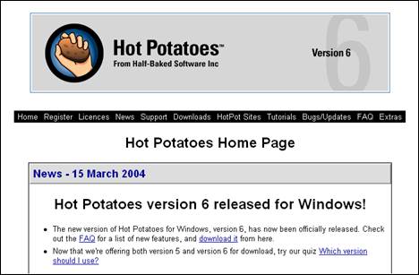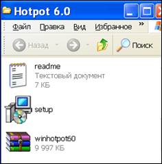 В разделе Downloads при обращении к ссылке Hot Potatoes for Windows 98/ME/NT4/2000/XP (version 6.0.3, self-extracting, auto-installing zip file) программа копируется в папку Hotpot 6.0, в которую входят 3 файла: