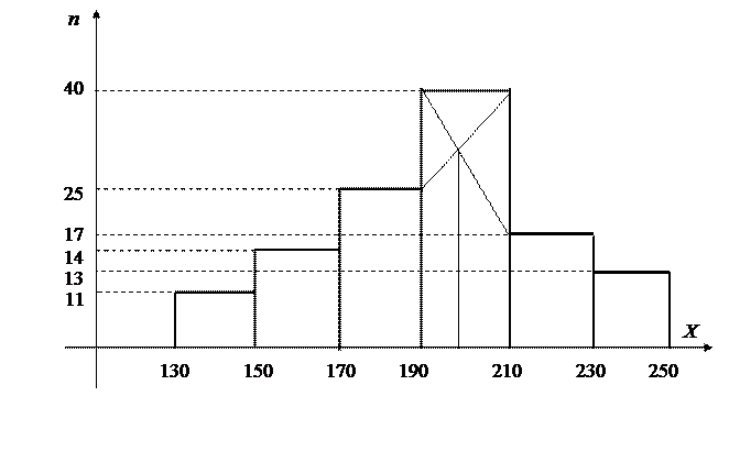 На рассматриваемом предприятии наиболее часто встречается зарплата 197,89 грн. Графически мода находится с помощью гистограммы. Модальным является наибольший прямоугольник.
