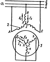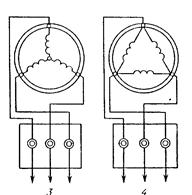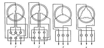 Статор и ротор состоят из сердечника (магнитопровода) и обмоток. Сердечники статора и ротора набирается из стальных пластин толщиной 0,5 мм, изолированных лаком или тонкой бумагой для уменьшения потерь на вихревые токи. Пластины штампуются с впадинами (пазами), собираются в отдельные пакеты и крепятся в станине двигателя (статор), или на валу машины (ротор). Между поверхностями статора и ротора имеется небольшой воздушный зазор размером 0,8 - 1,5 мм. В пазы статора укладывается трёхфазная обмотка проводники которой соединяются ”звездой” или ”треугольником”. Обычно на щитке машины имеется шесть зажимов, к которым присоединяются начала и концы обмоток. Приняты следующие обозначения выводов фаз обмотки статора: начала фаз маркируются С1, С2, С3; их концы соответственно С4, С5, С6.