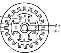 Рис. №2.Синхронная машина. 1. якорная обмотка; 2. якорь; 3. щётки и контактные кольца; 4. индуктор; 5. обмотка возбуждения.
