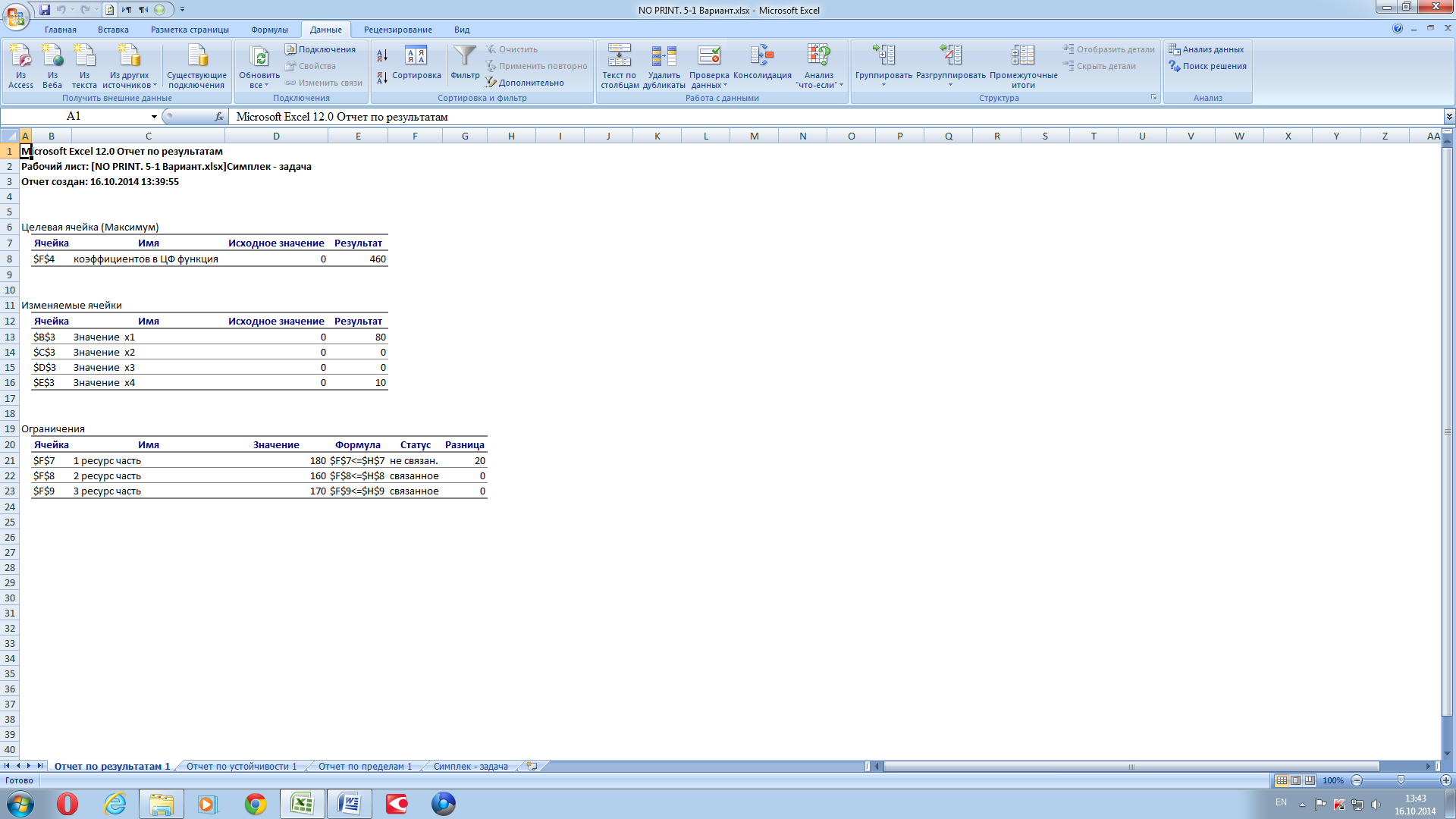 Рисунок 9. Жмём «Ok». Отчёты смотреть в файле Excel. Задача решена.
