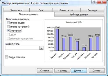 - на вкладці Подписи данных включимо підписи значень над стовпцями, встановивши a для опції значения: