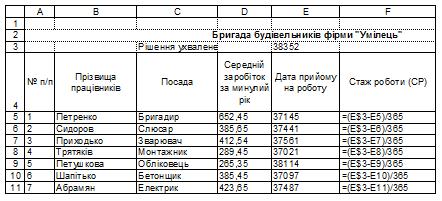 4. Розрахункова таблиця у формульному вигляді