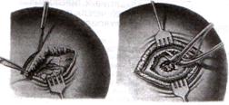 2. Волосы на месте травмы сбривают, обрабатывают и ограничивают операционное поле 3. Экономно иссекают края разможенных тканей (края раны). При скальпированных ранах лоскут не иссекается. 4. Из раны удаляют нежизнеспособные участки травмированных тканей, инородные тела и промывают ее антисептиком. 5. Кусачками расширяют дефект кости до появления неизмененной твердой мозговой оболочки, выравнивают края трепанационного окна, придавая им скос кнаружи. 6. Осматривают дно раны, при обнаружении осколков кости извлекают их лопаточкой. 7. Оценивают состояние твердой мозговой оболочки (в норме: хорошо пульсирует, нормального цвета) а) не повреждена – не рассекается б) напряжена, плохо пульсирует, сквозь нее просвечивается гематома: путем прокола пытаемся аспирировать гематому. Если аспирация крови не удалась или гематома возникает вновь – рассекаем твердую мозговую оболочку, перевязываем или клипируем кровоточащие сосуды, удаляем кровь и ее сгустки с помощью струи изотонического раствора натрия хлорида и марлевых шариков. в) повреждена при ранении: начинаем с осторожного удаления внедрившихся в твердую мозговую оболочку осколков кости ® экономно иссекаем края дефекта твердой мозговой оболочки ® разрушенную ткань головного мозга и поверхностно расположенные осколки костей удаляем струей физраствора ® обрабатываем раны головного мозга (сдавливаем яремные вены для повышения внутричерепного давления – это приводит к выделению мелких фрагментов костей и мозгового детрита), выполняем гемостаз ® рану твердой мозговой оболочки ушиваем наглухо NB! Возможности повреждение венозного синуса осколком и возникновение кровоточения после удаления осколка кости. 8. Наглухо ушиваем раны мягких тканей головы. Техника обработки закрытых ран: 1. Положение больного на спине или на противоположном стороне повреждения боку. 2. Разрез в зависимости от анатомо-топографических особенностей области повреждения. 3. При осмотре повреждения кости выясняют размеры ее фрагментов, их положение и отношение к твердой мозговой оболочке. Все осколки, не связанные с надкостницей, удаляют. Крупные осколки, при хорошо сохранившейся связи с надкостницей, могут быть оставлены (особенно у детей). Для этого их аккуратно приподнимают из раны, производят осмотр твердой мозговой оболочки для оценки ее состояния и укладывают осколки на место 4. Раны покровов черепа ушиваются наглухо.