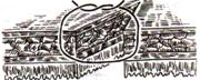 Техника: вкол производят на 0,6 см от края, а выкол на крае между подслизистым и мышечным слоями, не прокалывая слизистую; на второй стороне вкол делают на границе мышечного и подслизистого слоя, а выкол, не прокалывая слизистой, на 0,6 см от края разреза.