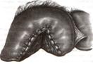 2. По линии изменения цвета гильотинным способом отсекают часть органа с последующим дополнительным гемостазом в ране печени.
