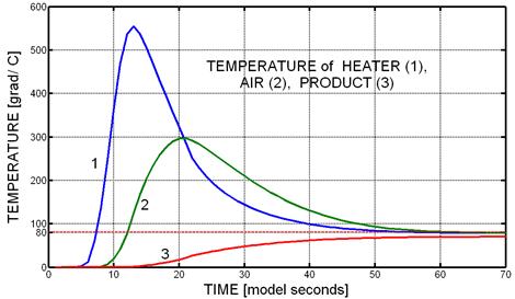 Рисунок 12 – Графики температур для модели САР с двухпозиционным PD-регулятором.