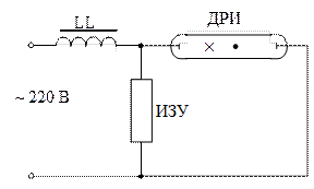 Рис. 2.10. Схема включения лампы ДРИ в сеть