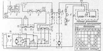 Наземные электротележки предназначены для транспортировки грузов на производственных площадках с твердым и ровным покрытием (например, асфальт, бетон и др.). Электротележки (ЭТ) работают в узких проходах помещений различного производственного назначения, где невозможна работа других транспортных средств. Кроме того, на базе «ЭТ» построены и другие машины безрельсового напольного электротранспорта: электрогрузчики, электроштабелеры, электротягачи. УЗА — устройство зарядное автоматическое. Основные элементы выпрямителя: Она обеспечивает: Все электрокары и электропогрузчики оборудуются двигателями постоянного тока последовательного возбуждения, за исключением двигателя подъема вил элек-троштабелера ЭШ-182. Мощность тягового двигателя, в зависимости от типа машины, колеблется в пределах 0,75—7,5 кет, а напряжение в пределах 30—50 в. Источником питания для них являются аккумуляторные батареи. Контроллеры для пуска, остановки и переключения скоростей движения электрокаров и электропогрузчиков применяются барабанного и кулачкового типа. Контроллеры первого типа применяются на машинах зарубежного производства. Кулачковые контроллеры более надежны, чем барабанные; их используют на всех отечественных машинах. Некоторые машины имеют контакторное управление, исключающее необходимость применения громоздких и металлоемких контроллеров. Преимуществом контактор-ного управления является уменьшение размеров и веса оборудования, что позволяет устанавливать его в наиболее удобном для управления месте. Панель с силовы- Ми контакторами можно расположить в непосредственной близости от двигателя, уменьшив этим потерю энергии в соединительных проводниках. В электрических схемах электрокаров и электропогрузчиков предусматриваются различные блокировки, предупреждающие неправильные включения при управлении ими. Такие блокировки исключают возможность пуска двигателя при замкнутых тормозах, включения заднего хода при работе машины вперед, пуска двигателя при отсутствии оператора на рабочем месте. Электрокары. Наиболее распространенным электрокаром отечественного производства является электрокар ЭК-2. При сравнительно небольших размерах он обладает большой маневренностью. На электрокаре ЭК-2 установлен кулачковый контроллер, контакты которого замыкаются с помощью профилированных кулачков, насаженных на вал контроллера. Источником питания является щелочная желе-зоникелевая аккумуляторная батарея. Электрокар ЭКП-750 по устройству отличается от электрокара ЭК-2 наличием подъемной платформы. Под контейнер электрокар подходит с опущенной платформой, затем платформа поднимается и контейнер оказывается установленным на ней. На базе электрокара ЭКП-750 изготовлены электрокары ЭКБ-П-750 с подъемником, приводимым в движение общим двигателем. Подъем груза производится механизмом подъема платформы; электрокар ЭКБ-С-750 представляет собой электрокар-самосвал с опрокидывающимся кузовом и предназначен для перевозки деталей россыпью и сыпучих грузов. Его кузов имеет объем 0,25 м. Электрокары ЭТБ-1000, ЭКБ-С-1000, ЭКБ-Г-1000, ЭТ-1 представляют собой модификацию электрокаров грузоподъемностью 750 кг и рассчитаны на транспортирование грузов до 1 т. Двигатель и аккумуляторная батарея такие же, как и у электрокара ЭКП-750. В настоящее время в Сов