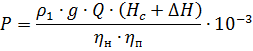 Аналогично тому, как это было сделано для вентилятора, можно определить мощность на валу центробежного насоса, кВт, которая равна: