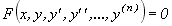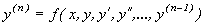 відноситься до рівняння в частинних похідних. Порядком диференціального рівняння називається найвищий порядок похідної (чи диференціала), що входить у рівняння. Розглянемо звичайні диференціальні рівняння. Звичайне диференціальне рівняння n -го порядку в самому загальному випадку містить незалежну змінну, невідому функцію і її похідні чи диференціали до n -го порядку включно і має вид