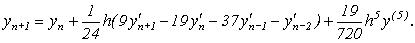 Це стійкий метод четвертого порядку точності, в основі якого лежать наступні формули прогнозу:
