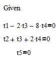 2t1+9t2+5t3+2t4+t5=0 t1+3t2+t3-2t4-9t5=0 3t1+12t2+6t3-8t5=0 2t1+10t2+6t3+4t4+7t5=0