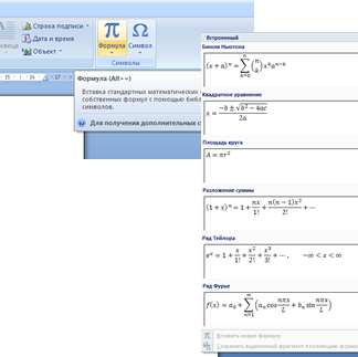 Рис. 31. Окно «Формула» закладки «Вставка».