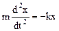 Пружинным маятником называется система, состоящая из груза массы m, подвешенного на пружине и совершающий гармонические колебания под действием упругой силы (рис.15.1). Обозначим смещение пружины из положения равновесия x. Тогда сила, возникающая в пружине при выведении шарика из положения равновесия, будет равна F = -kx. Эта сила пропорциональна величине смещения и направлена к положению равновесия. В таком случае уравнение движения шарика, согласно второму закону Ньютона, запишется в виде