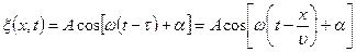где υ — скорость распространения волны. Следовательно, колебания частиц, лежащих в плоскости х, будут отставать по времени на τ от колебаний частиц в плоскости х = 0, т. е. будут иметь вид