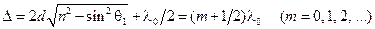 С учетом потери полуволны, возникающей при отражении от пластинки, оптическая разность хода лучей равна