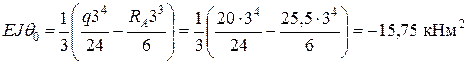 Построение упругой линии балки производится методом начальных параметров по формуле (1.13). Для первого пролета балки формула имеет вид