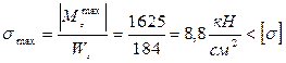 Этому значению соответствует двутавр №20: Jz =1840 см 4; Wz =184 см3. Максимальное напряжение