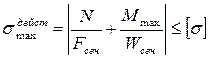 Сделаем проверку прочности с учетом продольной силы, определив максимальные действующие напряжения в опасном сечении