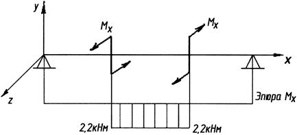 Расчетные моменты в сечениях вала: при х = 0,2 м Мz = 1,5 кнм, Мy = 5,38 кнм, Мx = 2,2 кнм, при х = 0,6 м Мz = 0,93 кнм, Му = 1,467 кнм, Мx = 2,2 кнм. Подбор сечения вала производим в сечении х = 0,2 м. Максимальный расчетный момент по III-ей теории прочности в соответствии с формулой (2.9) равен: