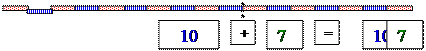 10 + 4 = 10 + 6 = 10 + 2 = 10 + 8 = Коментар: до 10 треба додати 7. 10 – це 1 десяток, 7 – це 7 одиниць; поєднуємо: 1 десяток і 7 одиниць складають число 17... Ознайомлення учнів зі способом віднімання з числа другого десятка його одиниць (спосіб віднімання на основі знання десяткового складу числа) відбувається аналогічно: утворюємо за допомогою штанг число „16” („18”, „17”…). – Скільки в ньому десятків? – Скільки одиниць? Позначаємо одержане число за допомогою карток з цифрами. Відсуваємо штангу „6” („8”, „7”…). Відсуваємо картку з цифрою „6” („8”, „7”….) Визначаємо, що залишилося? Що значить відсунути, виключити на математичній мові? Подивіться, як складено рівність.