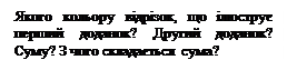 Після чого вчитель повідомляє, що вираз, який записано ліворуч від знака „=”, називається так само, як і результат – „сума”! Якщо між числами стоїть знак „+”, то записана сума. Щоб записати суму, треба між числами поставити знак „+”, а, щоб знайти значення суми, треба ці числа додати! Отже, треба розрізняти поняття „сума” як назву виразу та „значення суми” – як числове значення виразу. На етапі первинного закріплення діти підкреслюють або записують математичні вирази „суми” двох даних чисел. Переставний закон додавання. Ознайомлення з переставним законом додавання здійснюємо через співставлення рівностей, що складені за карткою „доміно”, і підводимо дітей до формулювання закону на підставі індуктивних узагальнень. За числовими фігурами складіть рівності на додавання. Прочитайте рівності. Що цікавого ви помітили?