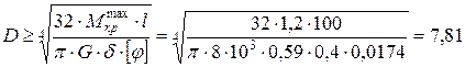 Принимаем большее значение диаметра вала из условия жесткости, чтобы обеспечить одновременное выполнение двух условий. Таким образом, D > 6,84 см. Окончательно назначаем D = 70 мм.