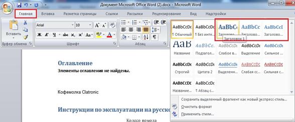 5. Если нужно, делаем второстепенные заголовки. Они будут отображаться в оглавлении чуть правее. Также выделяем необходимый текст, только нажимаем «Заголовок 2» и т.д.. 6. Переходим на первую страницы, где будем создавать оглавление. Затем заходим во вкладку Ссылки, наводим на оглавление. Выбираем понравившийся вид, и нажимаем.