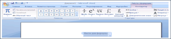 Рисунок 8 – Вкладка «Работа с формулами_Конструктор» фрагмента окна «Microsoft Word»