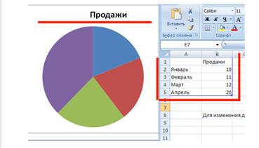 Рисунок 9 – Диалоговое окно «Вставка диаграммы» 3) На экране появиться дополнительное окно из программы «Microsoft Exсel», где следует внести все данные. В левой колонке вписываем месяцы или другую информацию, а справа количество (например, продажи):