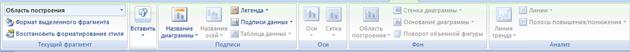 Вкладка Макет позволяет добавить/удалить название диаграммы, легенду, подписи данных, настроить оси: